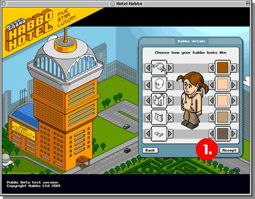 Lorsque vous êtes habillé et prêt à naviguer sur Habbo Hôtel, cliquez sur «Accepter» pour compléter votre inscription.