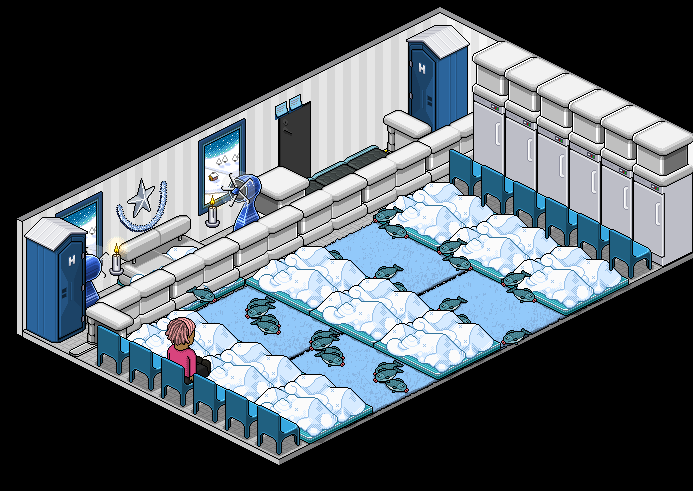 1. 6 Habbos entrent dans le WCporteur puis s'intallent sur les chaises bleues 2. Au GO de !-BenjamiN-!, vous faites le parcours jusqu'au frigo et vous y prenez une glace. 3. Vous faites le retour jusqu'aux chaises du départ : le dernier arrivé est kické jusqu'à ce qu'il ne reste qu'un seul Habbo qui est gagnant. BONNE CHANCE ! Pour acheter du mobi