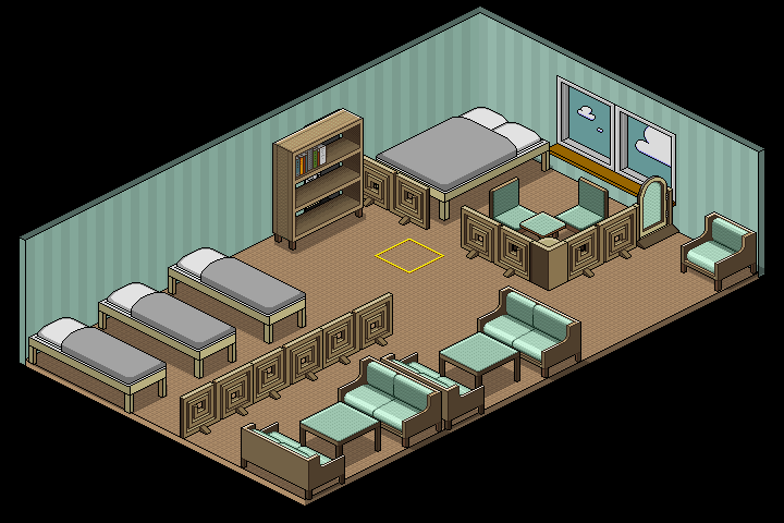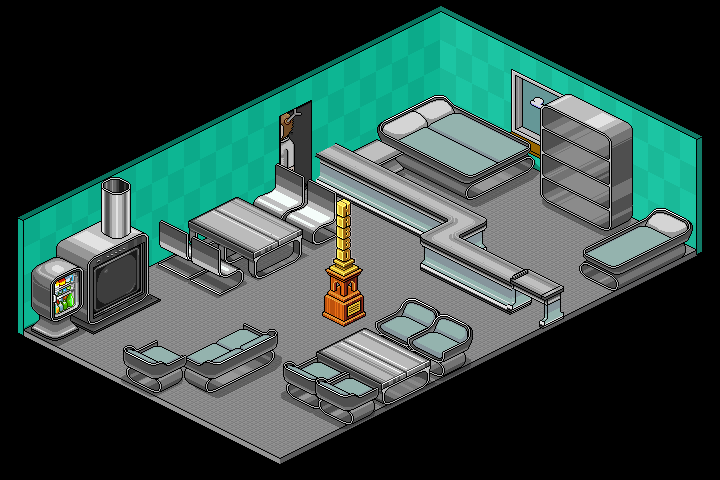 Area Stylé et fonctionnel. Pour les Habbos qui n'ont pas de temps à perdre. Idéal pour les bureaux et les salles de réunion. |