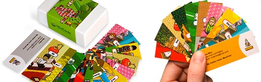 Les Minicartes sont toutes livrées directement chez toi - dans des Miniboîtes ;) Chaque Miniboîte coûte 14,99 Euros et contient 100 minicartes...
