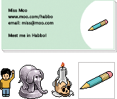 Les Habbo Minicartes sont de petites cartes de visite sur lesquelles apparaissent ton Habbo (au recto) et tes coordonnées (au verso).